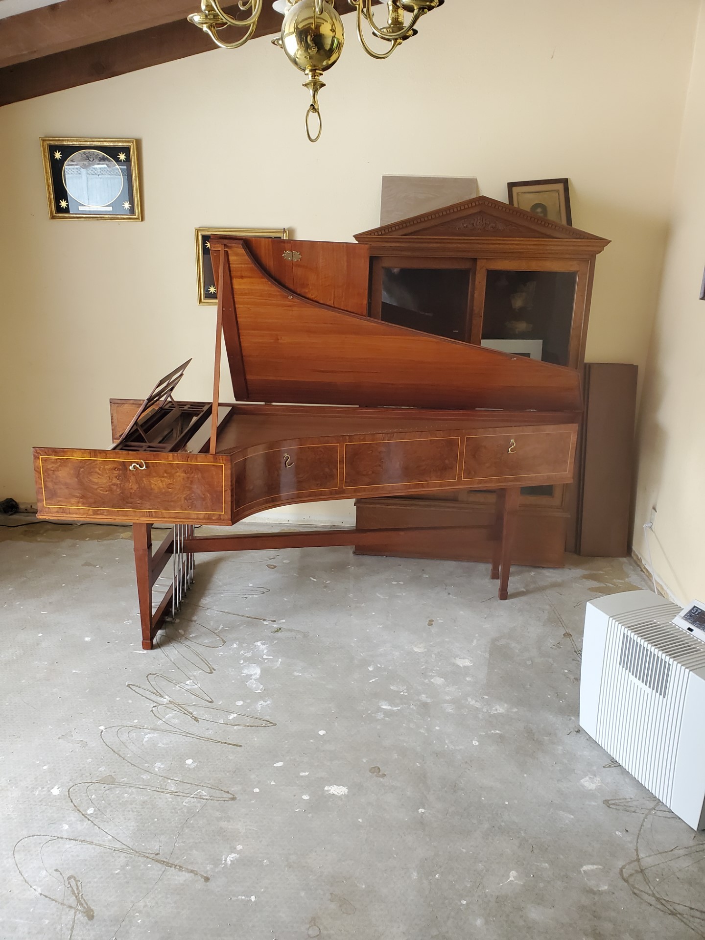 Dimensions: 95" long X 38" wide X 12" high (from bottom of the harpsichord to the closed lid.)