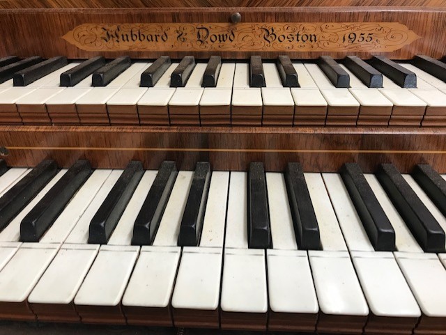 Ivory and black oak keys.